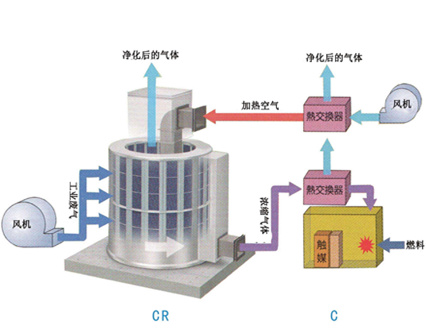 把有機廢氣加熱到760℃以上,將有機廢氣氧化生成CO2和H2O,從而凈化廢氣,并回收分解時所釋出的熱量,以達到環保節能的雙重目的,是一種用于處理中高濃度揮發性有機廢氣的節能型環保裝置。